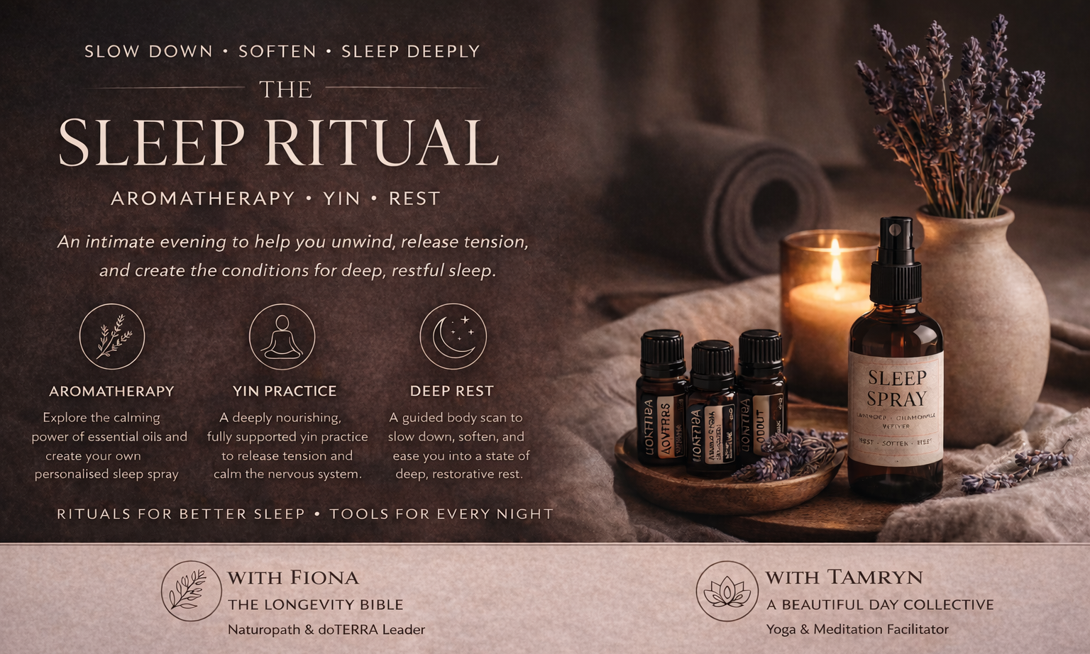 You’ll leave not only feeling calmer and more grounded, but with simple, practical tools to support your sleep beyond the evening.